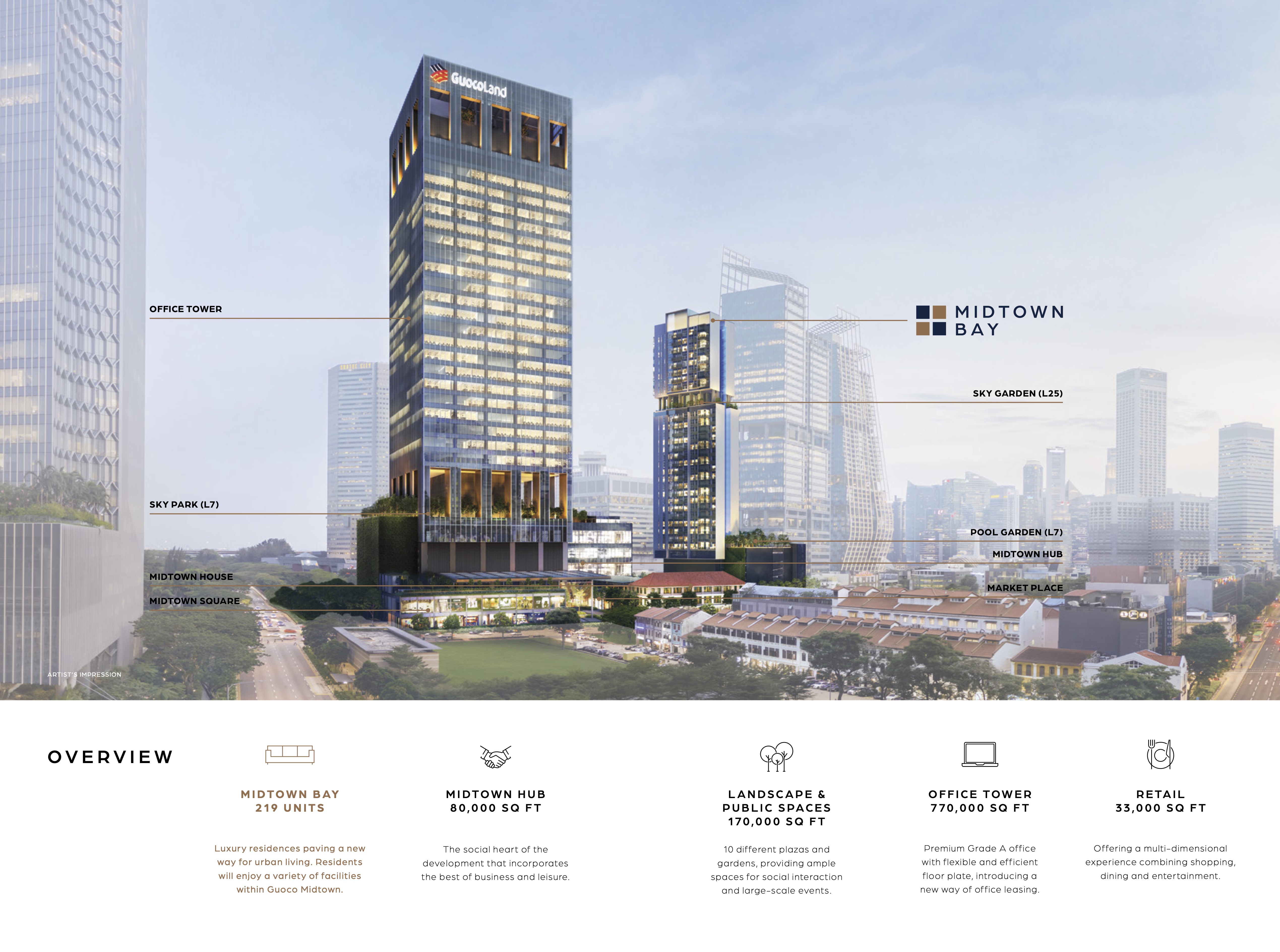 Midtown Bay, occupying 3.2 hectares of prime land at the frontier of the expanding Central Business District, GuocoLand’s ambitious mixed-use development Guoco Midtown is set to become the new beating heart of the city. Guoco Midtown is the city of the future. A modern, progressive, and innovative development that anticipates the future lifestyle of the people.